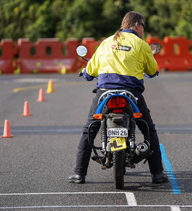 Back view of motorcycle licence instructor